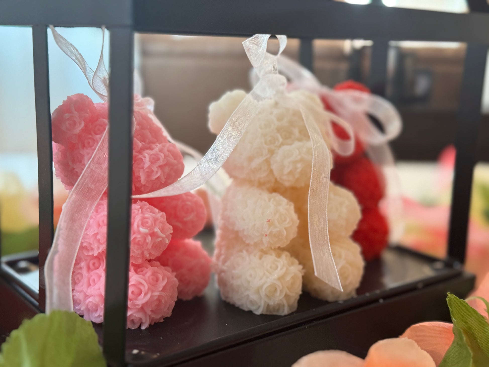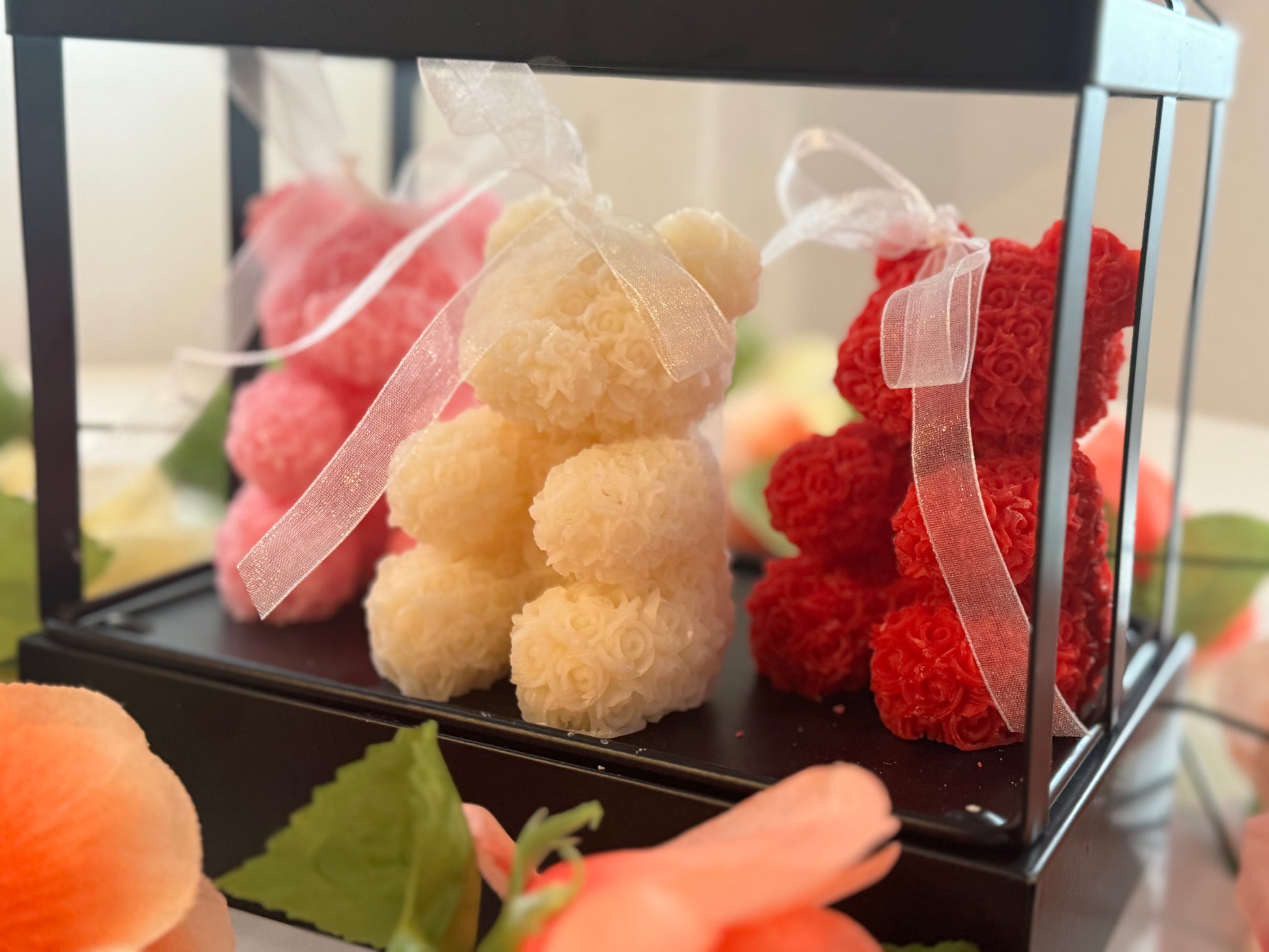 Our Bears come in a 3pk of one of each color (red, white, pink) . Each bear comes in a different scent. They come in our most popular scents Jamaica me Crazy, Cashmere, Strawberry Guava.